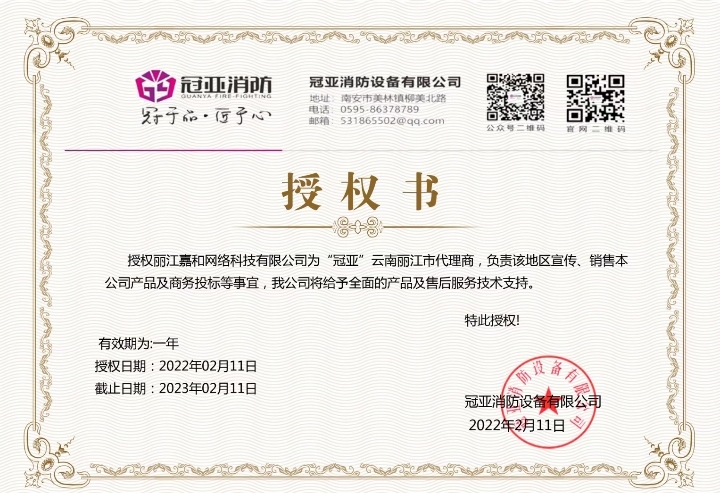 關于麗江和府酒店有限公司英迪格酒店電子監控安防合格證下證通知