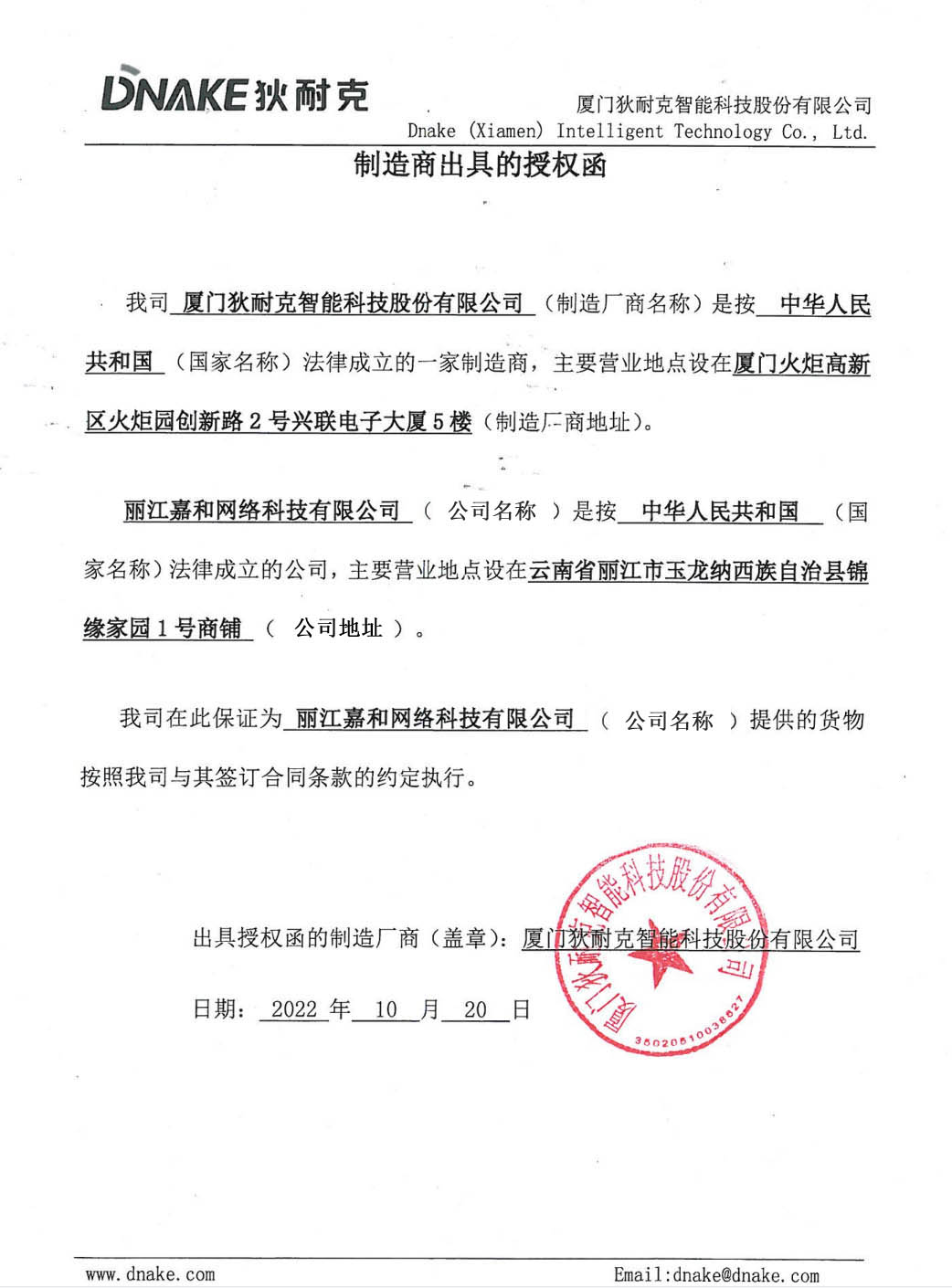 熱烈慶祝我司與狄耐克達成戰(zhàn)略合作(授權函)