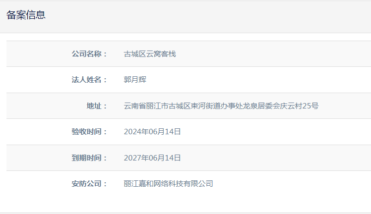 關于古城區云窩客棧電子監控安防合格證下證通知