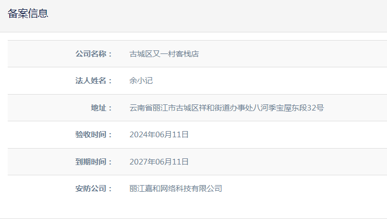 關(guān)于古城區(qū)又一村客棧店電子安防合格證下證通知