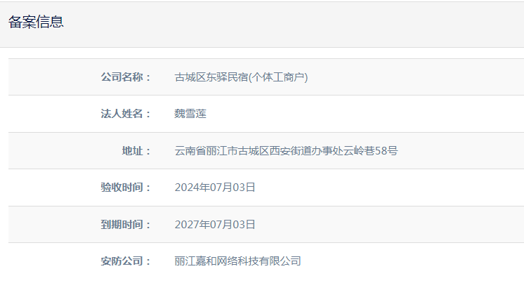 關(guān)于麗江和府酒店有限公司英迪格酒店電子監(jiān)控安防合格證下證通知