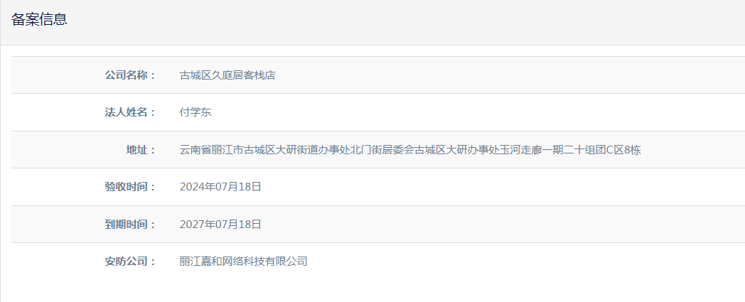 關(guān)于麗江和府酒店有限公司英迪格酒店電子監(jiān)控安防合格證下證通知