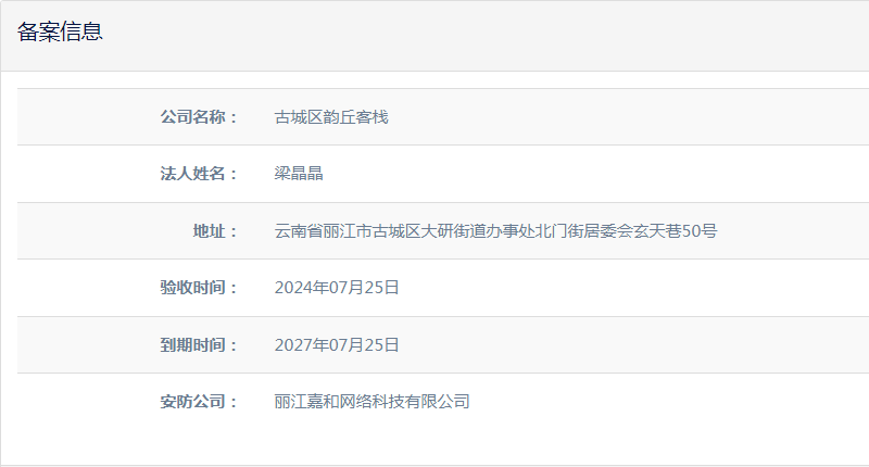 關于古城區韻丘客棧電子監控安防合格證下證通知