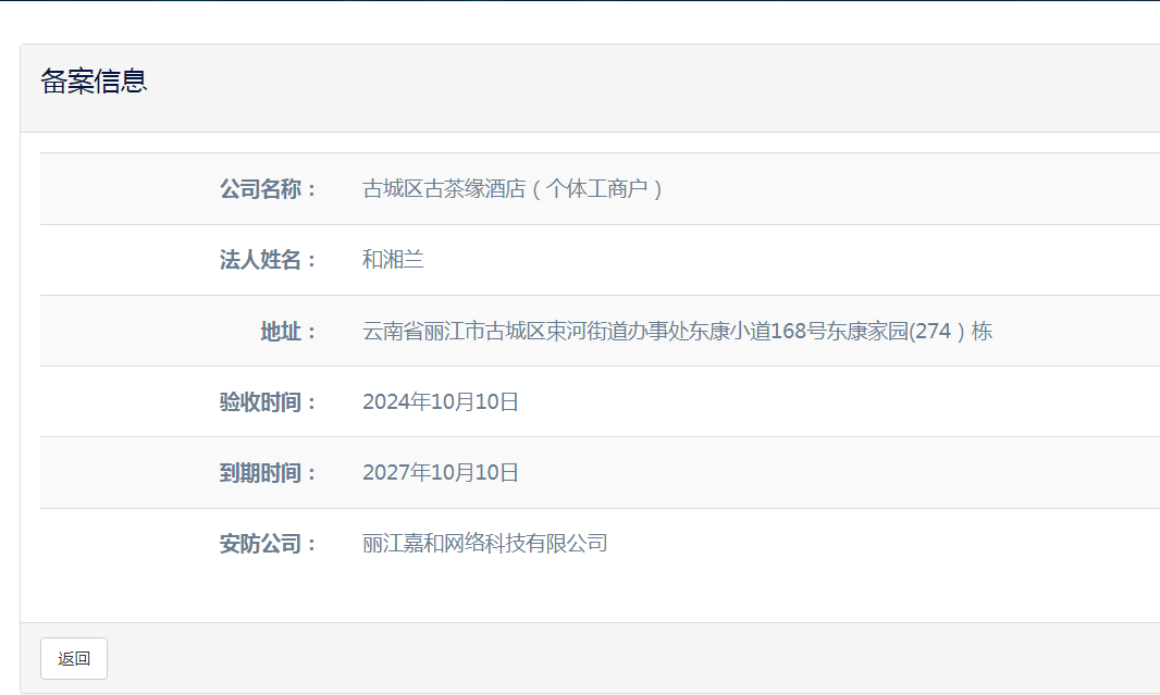 關于麗江和府酒店有限公司英迪格酒店電子監控安防合格證下證通知