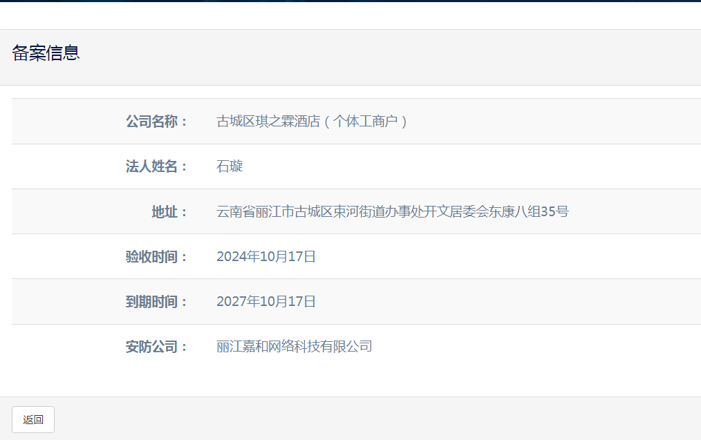關(guān)于麗江和府酒店有限公司英迪格酒店電子監(jiān)控安防合格證下證通知