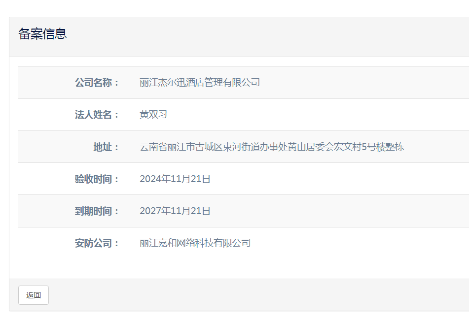 關于麗江杰爾迅酒店管理有限公司電子監(jiān)控安防合格證下證通知