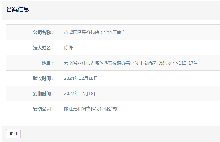 關(guān)于古城區(qū)溪漫客棧店(個(gè)體工商戶)電子監(jiān)控安防合格證下證通知