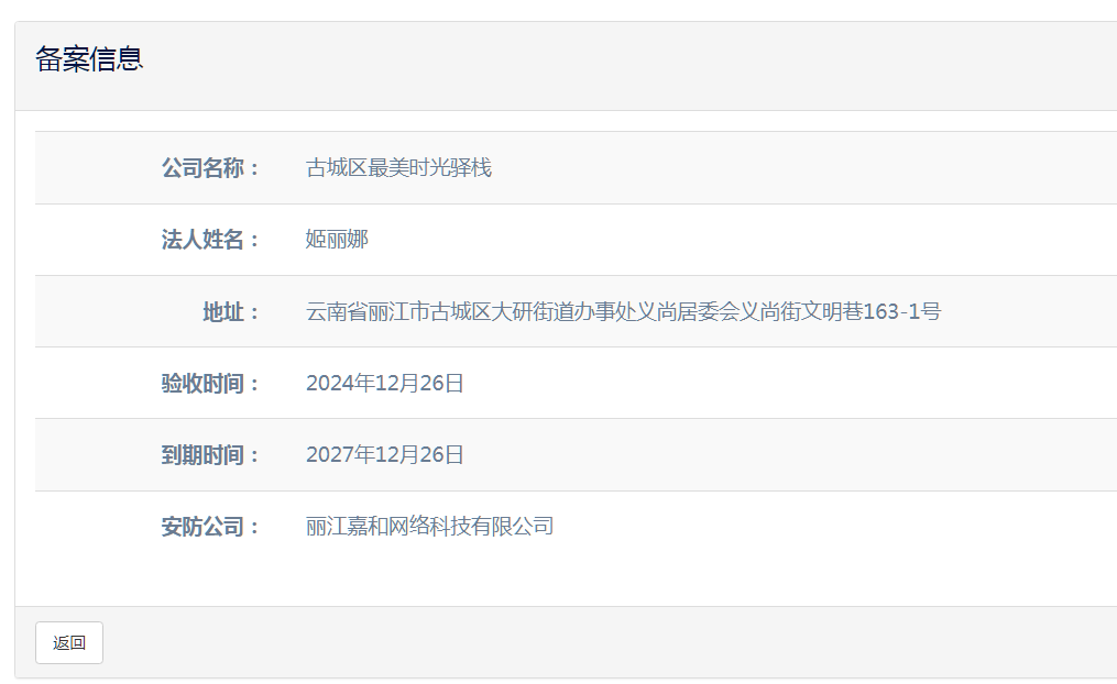 關于古城區(qū)最美時光驛棧電子監(jiān)控安防合格證下證通知