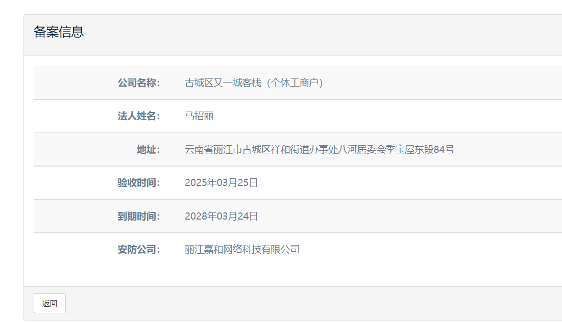 關于古城區又一城客棧(個體工商戶)電子監控安防合格證下證通知