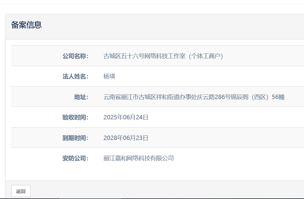 關于麗江東巴云物業服務管理有限公司電子監控安防合格證下證通知