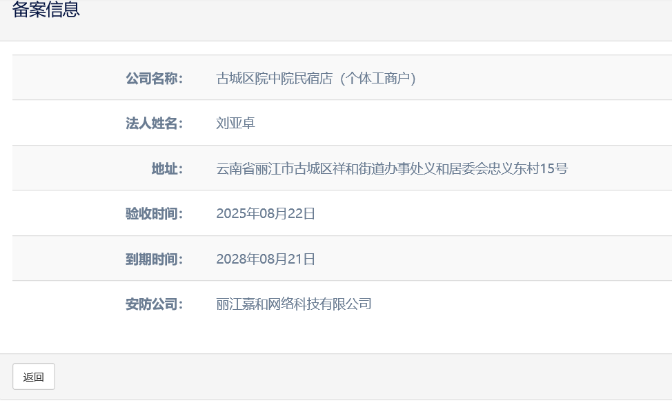 關于古城區院中院民宿店(個體工商戶)電子監控安防合格證下證通知